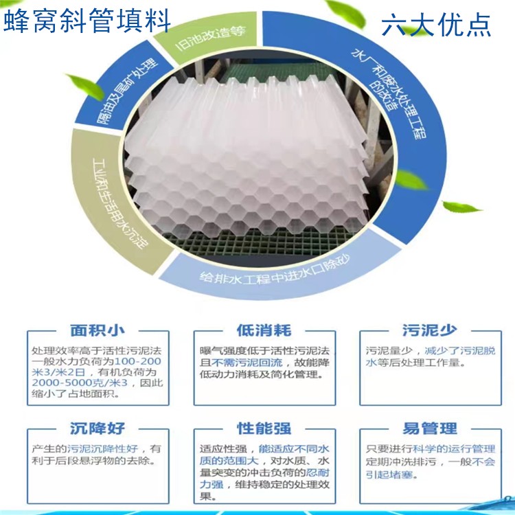 采用蜂窩斜管填料沉淀池其處理能力是平流式沉淀池的3-5倍,加速澄清池和脈沖澄清池的2-3倍直管直管主要用于生物濾池和高負荷生物濾池、塔式生物濾池。淹沒式生物濾池(又稱接觸氧化池)以及生物轉(zhuǎn)盤的微生物載體,對工業(yè)有機廢水和城市污水進行生化處理。